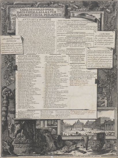 Frontispice pour un catalogue des oeuvres de Piranèse. Circa 1769 ( ?)