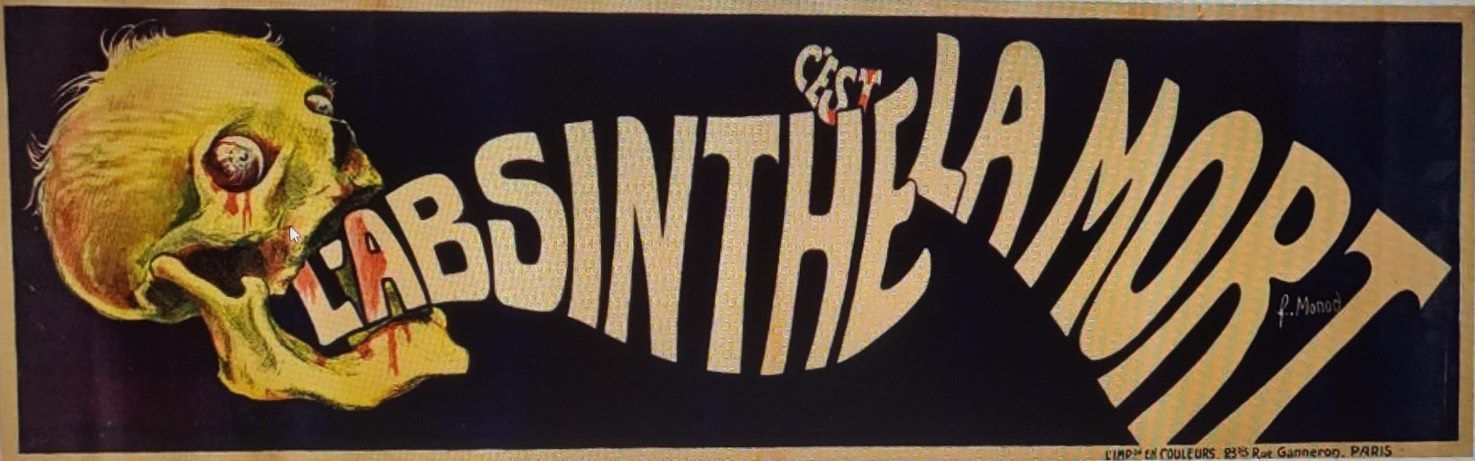 F. MONOD - L'Absinthe, c'est la mort, vers 1900 - Affiche Adjugée 950 € - De Baecque Paris / Expert Alain Cano / Octobre 2018